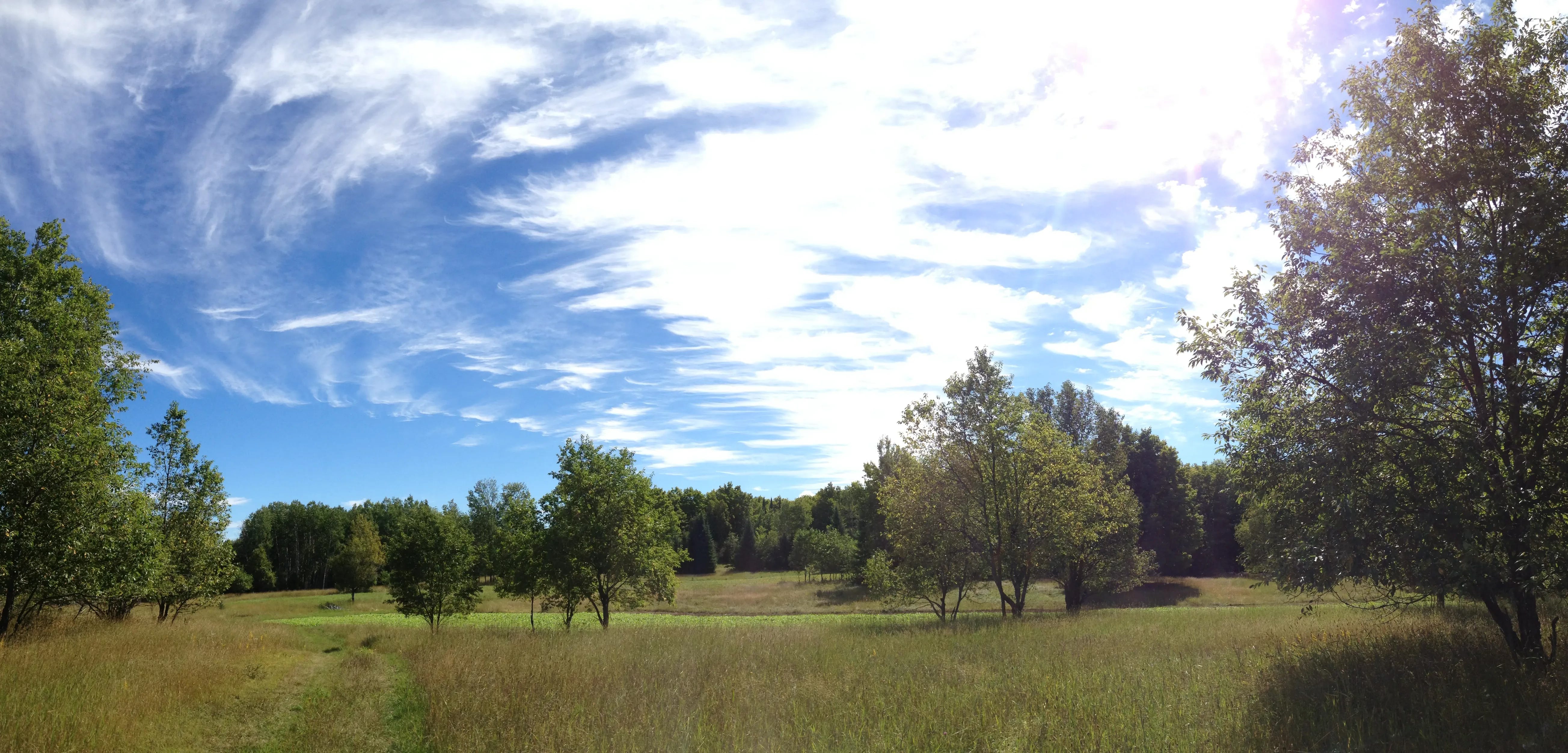All of that detail was the “narrative hook.” Irrelevant to the point, maybe. So, back to electric. Before it all, the shit and leeches, I used to approach the opening to that field, where the path dumped out to its gentle grandeur, with silent footfall. Scanned for deer and sandhill cranes. Proceeded into the wonder that my great grandparents left behind. A weathered wooden outhouse had folded in on itself, but right there, baring it all from the long grass, its good old two-seater. There was the oak, of course. Its trunk hugged with field stones. Tiny warm strawberries before it all went sour. It was a good field, then. You could pat its back and say, Good field. It shrank with the years as blackberry brambles and quaking aspen wanted to be a part of it. And I’d stand there in the heat of summer and hear something. It sounded electric. It sounded urgent. It surrounded me with defiance of source. The sound was real. This is not a metaphor.